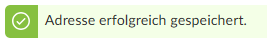 Wenn die Adresse erfolgreich angepasst wurde, erhalten Sie eine Bestätigungsmeldung im oberen Bereich des Menüpunkts.
